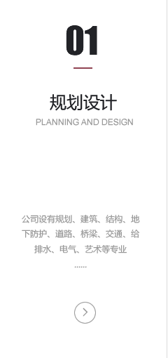 公司設(shè)有規(guī)劃、建筑、結(jié)構(gòu)、地下防護(hù)、道路、橋梁、交通、給排水、電氣、暖通、園林、環(huán)境藝術(shù)等專業(yè)。是目前我市擁有專業(yè)資質(zhì)及技術(shù)工種門類較全的綜合設(shè)計單位......